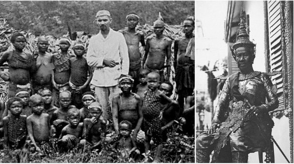 A droite le roi Sisowath du Cambodge. Il fut de toute évidence un métis de Noir et de Mongol